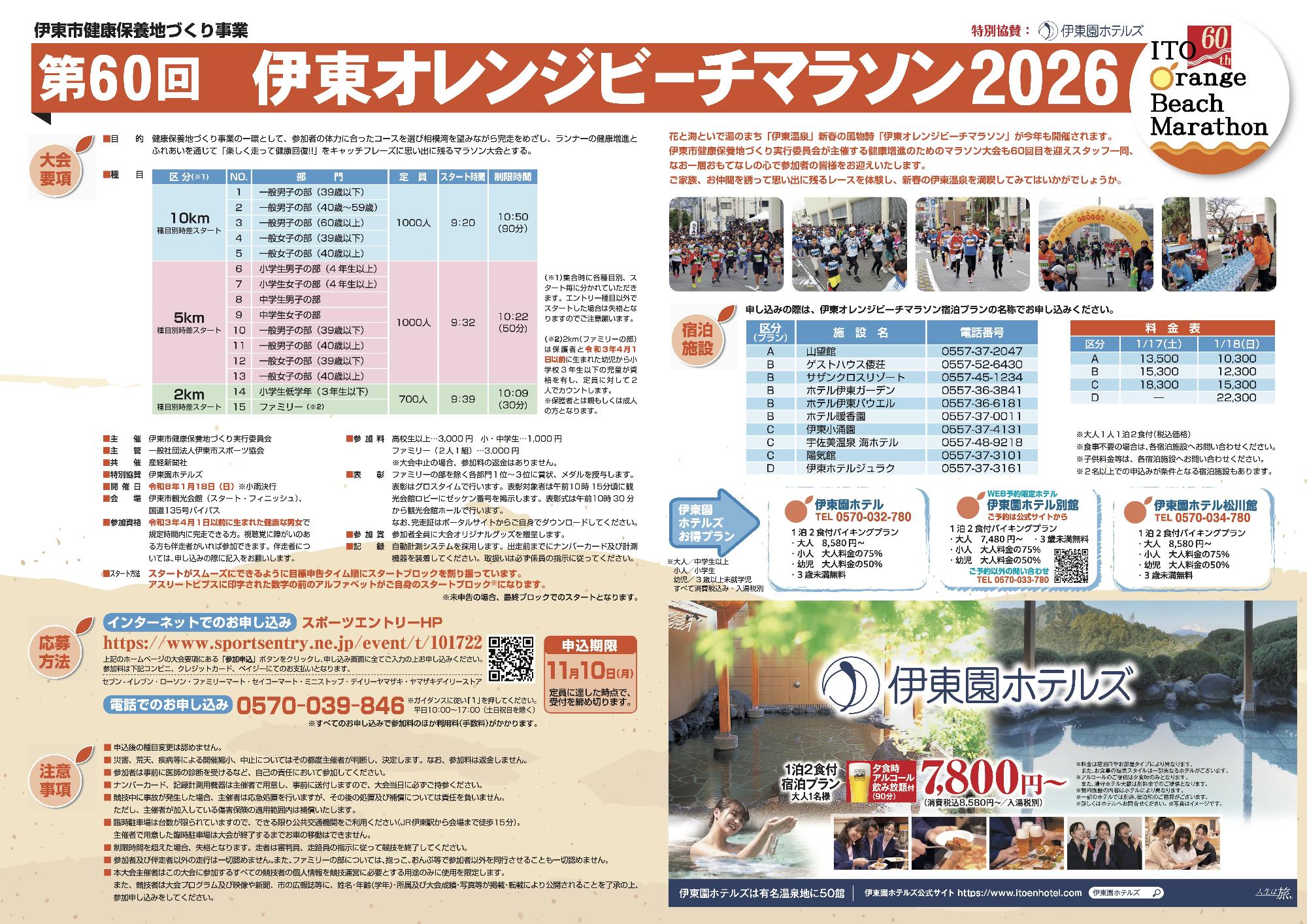 伊東市健康保養地づくり事業 第60回伊東オレンジビーチマラソン2026特別協賛伊東園ホテルズ